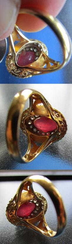 @## แหวนอัญญมณีโบราณฝังเพชรล้อม 2 แถว 36 เม็ด 0.72 การัต นน.4.3 ทอง 87% พร้อมบัตรรับรอง จีเพชร......แหวนสวย งานโบราญ ไว้สวมใส่ได้เลย...เพชรแวววาวสะท้อนเล่นแสงงาม