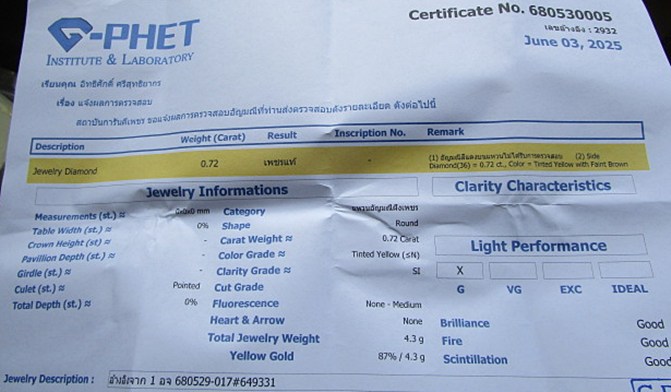 เพชรรอบนอก 20 เม็ด รอบใน 16 เม็ด รวม36เมด 0.72 carat
