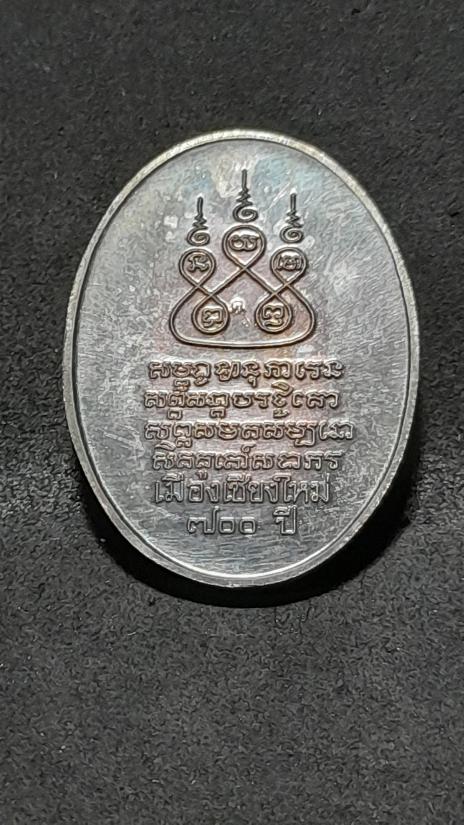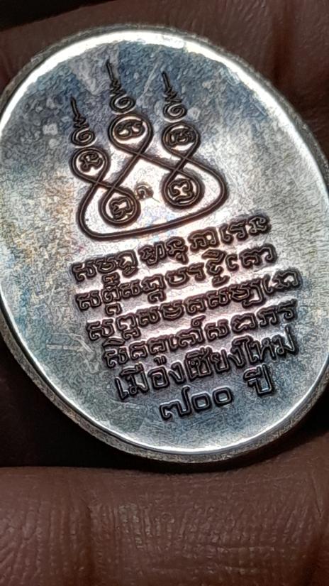 เหรียญครูบาศรีวิชัย รุ่นฉลองเมืองเชียงใหม่700ปี เชียงใหม่ วัดเจดีย์หลวง ปี2538 (เนื้อเงิน) ตอกโค๊ต ด. 1 ใน 500 เหรียญ สวยคากล่องเดิม
