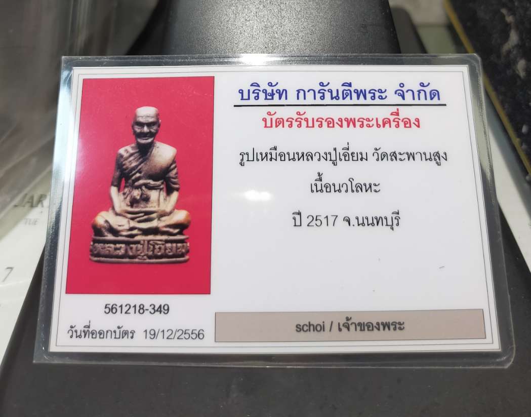 รูปเหมือนหลวงปู่เอี่ยม วัดสะพานสูง รุ่นโดดร่ม เนื้อนวะโลหะ อุดกริ่ง ปี 2517