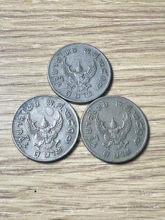 +++ เหรียญ 1 บาท มหาบพิธ เหรียญครุฑปี 17 ผ่านใช้ จำนวน 3 เหรียญ +++2 |