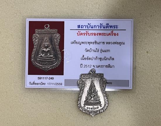 เหรียญพระพุทธชินราช ออกวัดแจ้งนอก รุ่นแรก ปี 2512 อัลปาก้าชุบเงิน พร้อมบัตรรับรอง