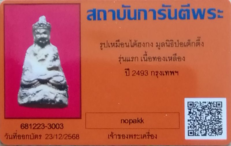 เทพเจ้าแห่งทรัพย์และโชคลาภ รูปหล่อ ไต่ฮงกง รุ่นแรก ปี2493 เนื้อทองเหลือง สวยเดิม มาพร้อมบัตรรับรองค่ะ
