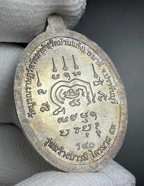 ส่วนเนื้อทองฝาบาตรหลังเรียบ (จำนวน 267 เหรียญ ตอกโค้ดและหมายเลข ราคา 300 บาท) ด้านหลังหลวงพ่อลงเหล็กจาร และจะเปิดให้บูชาหลังเสร็จพิธีพุทธาภิเษก(ไม่รับจอง)