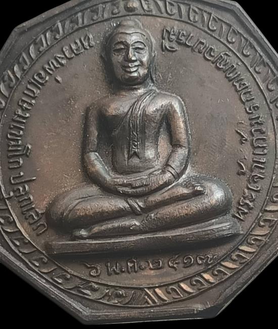 สวยมากๆครับ มีห่วงเดิม เหรียญพระเจ้าแก้วมรกตเบญจบารมี วัดคะตึกเชียงมั่น หลวงพ่อเกษม เขมโก เมตตาอธิษฐานจิตปลุกเสกเมื่อวันที่ ๖ พฤษภาคม ๒๕๑๗ เนื้อทองแดง รูปแบบเหรียญทรงแปดเหลี่ยมสวยงามมาก