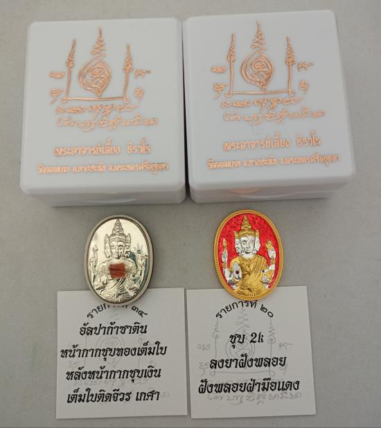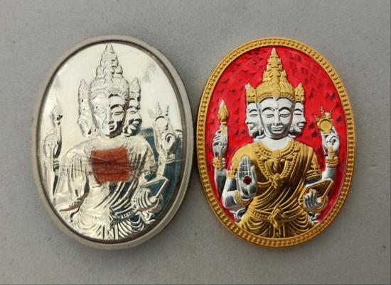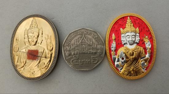 ชื่อพระเครื่อง วัดใจเคาะเดียวแดงจ้า เหรียญพระพรหม หลวงพี่เลี้ยง วัดจอมเกษ 2องค์ ตามรูป เคาะเดียวแดงจ้า