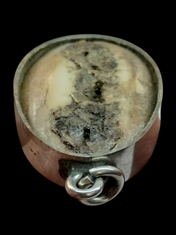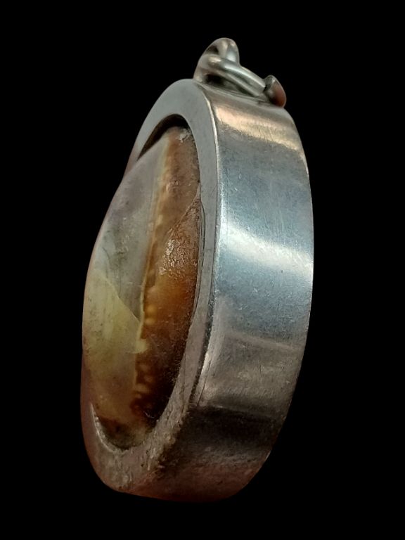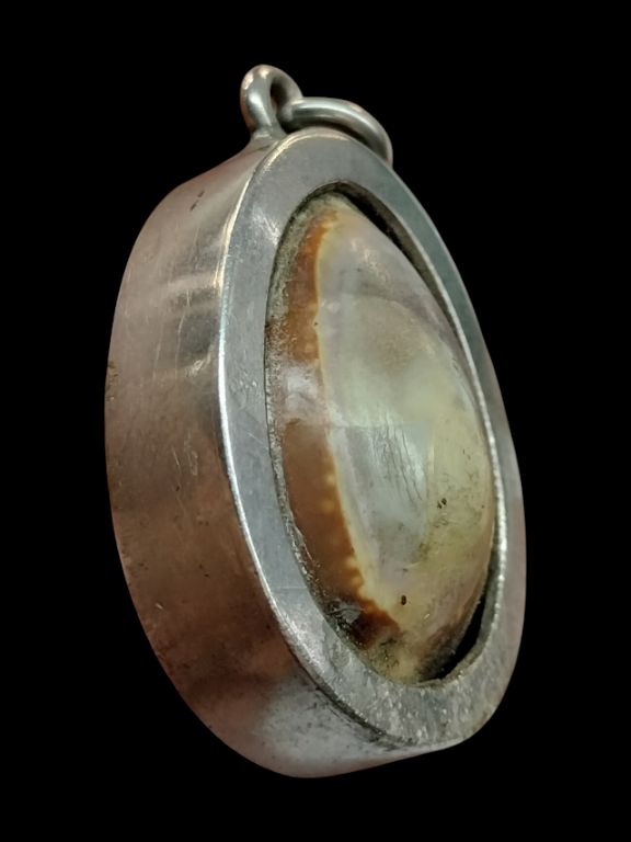 เบี้ยแก้ เลี่ยมสแตนเลส หลวงพ่อไพร วัดบางแคกลาง สมุทรสงคราม สภาพใช้ตามรูป