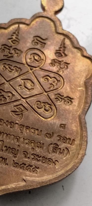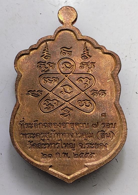 เหรียญเสมา หลวงปู่สิน ที่ระลึกฉลองอายุครบ 7 รอบ วัดละหารใหญ่ จ.ระยอง ปี2555 เนื้อทองแดง NO.8เลขสวย(ไม่มีกล่อง) |