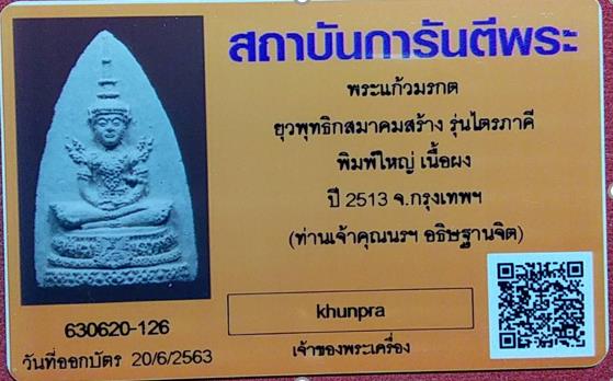 พระแก้วมรกต รุ่นไตรภาคี ปี 2513 พิมพ์ใหญ่ ยุวพุทธิกสมาคมสร้าง ท่านเจ้าคุณนร วัดเทพศิรินทรฯ อธิษฐานจิตปลุกเสก