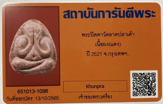 พระปิดตาวัดลาดปลาเค้า กรุงเทพฯ ปี 2521 หลวงปู่โต๊ะปลุกเสก) เนื้อสีแดง จำนวนสร้างน้อย