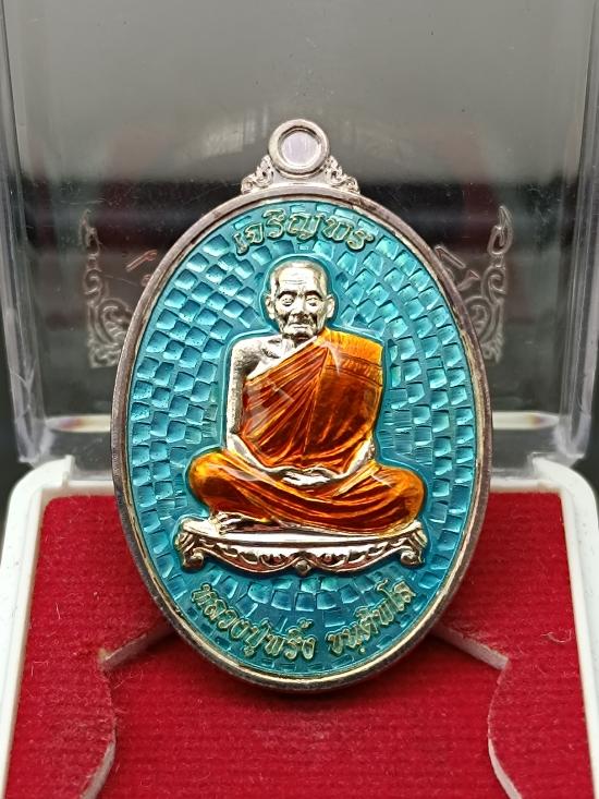 เหรียญเจริญพร(เต็มองค์) รุ่นแรก หลวงปู่พริ้ง ขันติพโล วัดซับชมพู่ อ.หนองไผ่ จ.เพชรบูรณ์ เนื้อเงิน ลงยาสีฟ้า หมายเลข 37