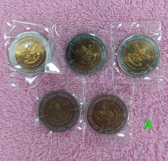 #A, เหรียญหลังครุฑ 10บาทสองสี วาระ ครบ 100ปี ธนาคารไทยแห่งแรก สภาพสวยสมบูรณ์ ( 5 เหรียญ)