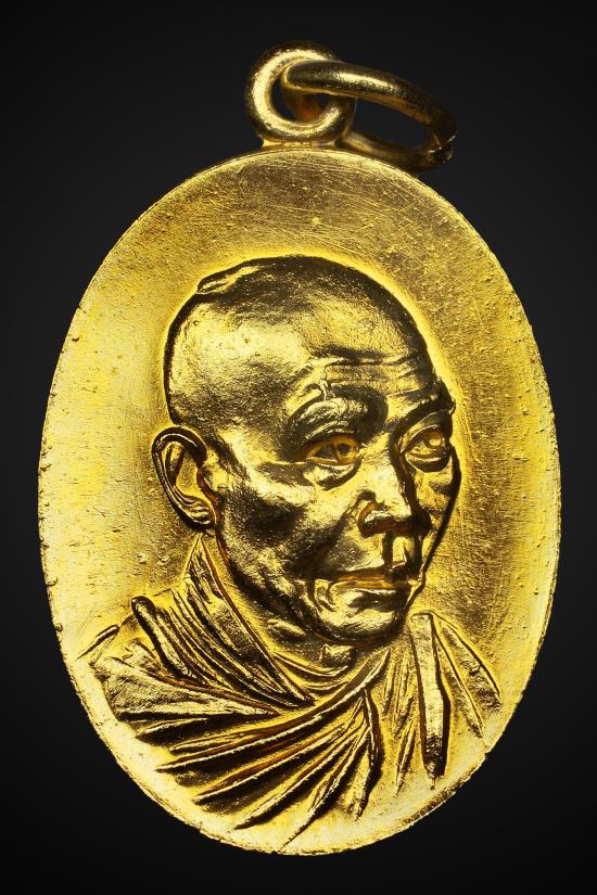 เหรียญกิ่งไผ่ (สวัสดี) หลวงพ่อเกษม เขมโก เนื้อทองแดงกะไหล่ทอง ปี 2518