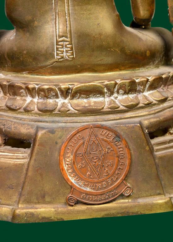 พระบูชาพระพุทธชินราช หน้าตัก 4 นิ้ว ฐาน 7 นิ้ว สูง 10.5 นิ้ว ซุ้มถอดได้ ใต้ฐานอุดปูน ปั๊มตรายาง องค์นี้ตอกหมายเลข 14 ที่องค์พระด้านหลังและซุ้มเรือนแก้ว พระหล่อได้หน้าสวยมาก