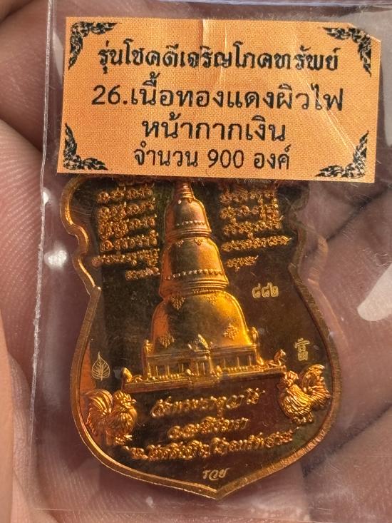 เหรียญหลวงพ่อปลดหนี้รุ่นโชคดีเจริญโภคทรัพย์ เนื้อทองแดงผิวไฟหน้ากากเงิน สร้าง 900 องค์ |