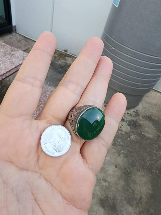แหวนเงินหัวหยกพม่า เนื้อเทียน เม็ดโตๆ ขนาดประมาณ 62-63 ตามรูป