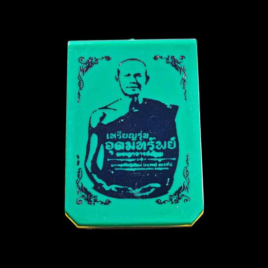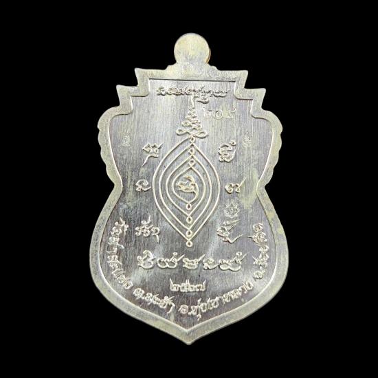 พระอาจารย์ต้อม วัดท่าสะแบง จ.ร้อยเอ็ด รุ่นอุดมทรัพย์ พิมพ์เสมา ( รายการ 4.1 เนื้อเงินหน้ากากมหาชนวน ขอบมหาชนวน ลงยาจีวร ) No.205 พร้อมกล่องเดิม