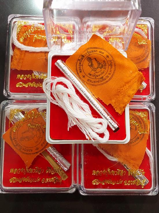 ตะกรุดเงิน ปั๊มจีวรหัวใจเศรษฐีรุ่นแรก 77 ยุคต้น หลวงปู่ศิลา สิริจันโท จำนวน 5 กล่อง |