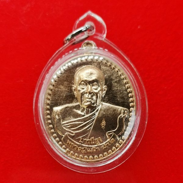 เหรียญบารมีสูง หลวงปู่แผ้ว ปวโร วัดรางหมัน จ.นครปฐม เลี่ยมใส่จีวรสายสิญจน์