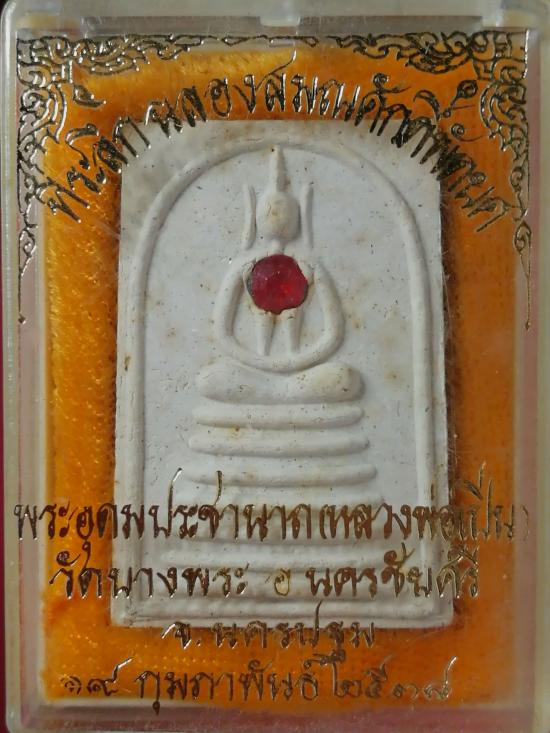 พระสมเด็จฝังพลอย หลังพัดยศ ลายเซ็นพระอุดมประชานาถ หลวงพ่อเปิ่น วัดบางพระ นครปฐม ปี ๒๕๓๘ พร้อมกล่อง