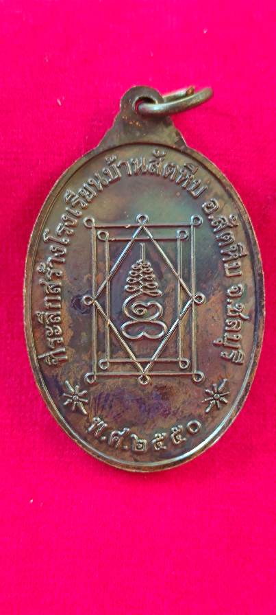 เหรียญหลวงพ่ออี๋ วัดสัตหีบ ชลบุรี ที่ระลึกสร้างโรงเรียนบ้านสัตหีบ พิมพ์ใหญ่ปี2550 เนื้อทองแดงรมดำ
