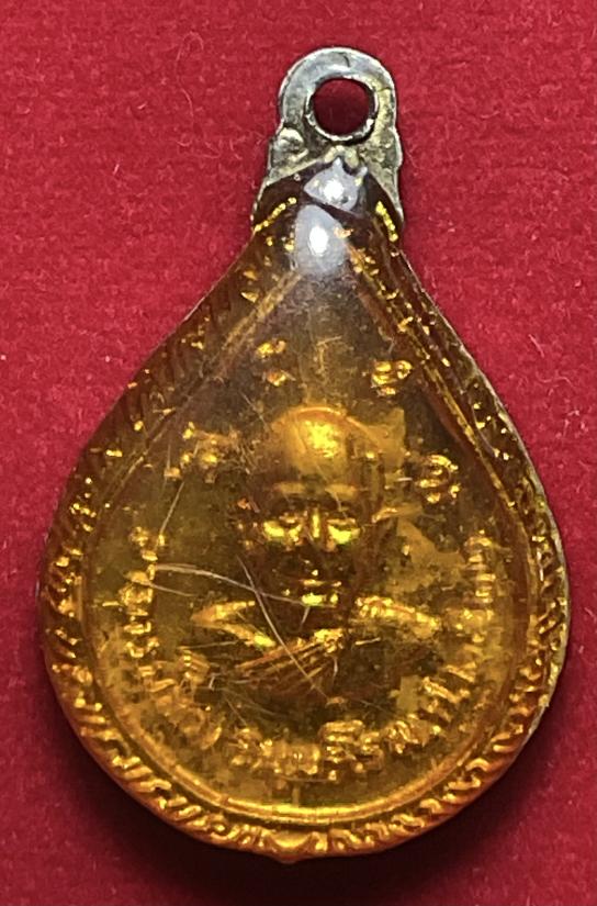 เหรียญหยดน้ำ ล.ป.ทวด ปี 2522 กะไหล่ทองลงยาสีเขียวเคลือบเรซิ่น สภาพสวย หายาก