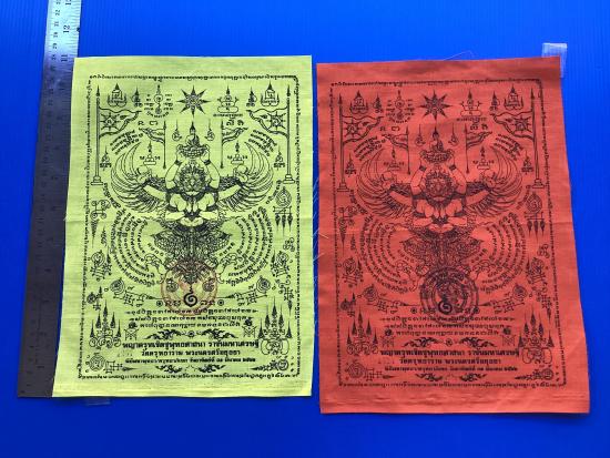 ผ้ายันต์ พญาครุฑ รุ่น ราชันย์มหาเศรษฐี วัดครุฑธาราม จ.พระนครศรีอยุธยา สีเหลือง และสีแสด ขนาด A4 (2 ผืน ) |