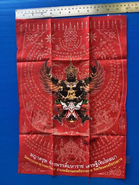 เคาะเดียวแดง 100 ผ้ายันต์ พญาครุฑ รุ่น เศรษฐีเงินไหลมา วัดพระศรีมหาธาตุวรมหาวิหาร จ.นครศรีธรรมราช สีแดง ขนาด A3 ขนาด 11.5 นิ้ว x 16.5 นิ้ว |