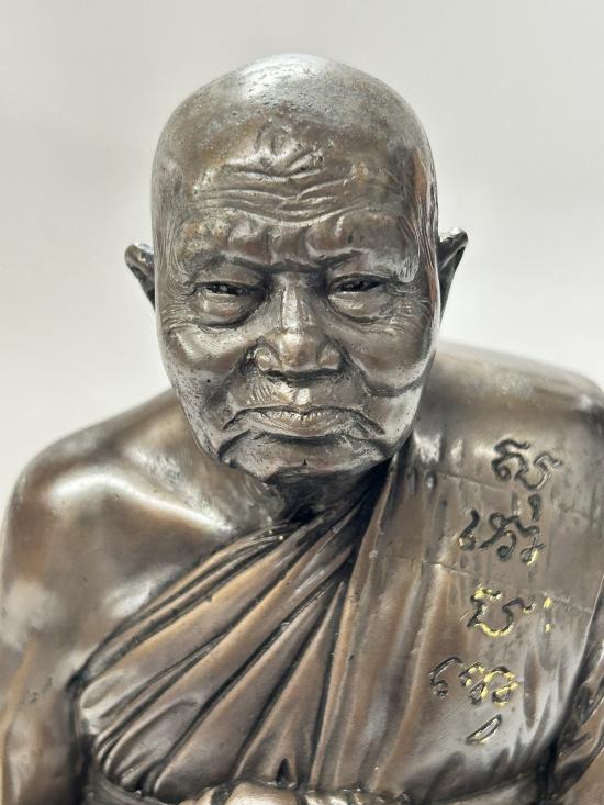 รายละเอียด พระบูชารูปเหมือน หลวงปู่ทิม วัดพระขาว พ.ศ. 2543 เนื้อโลหะรมมันปู ตอกโค๊ต ตอกเลข หน้าตัก 5.5นิ้ว สภาพสวยสมบูรณ์