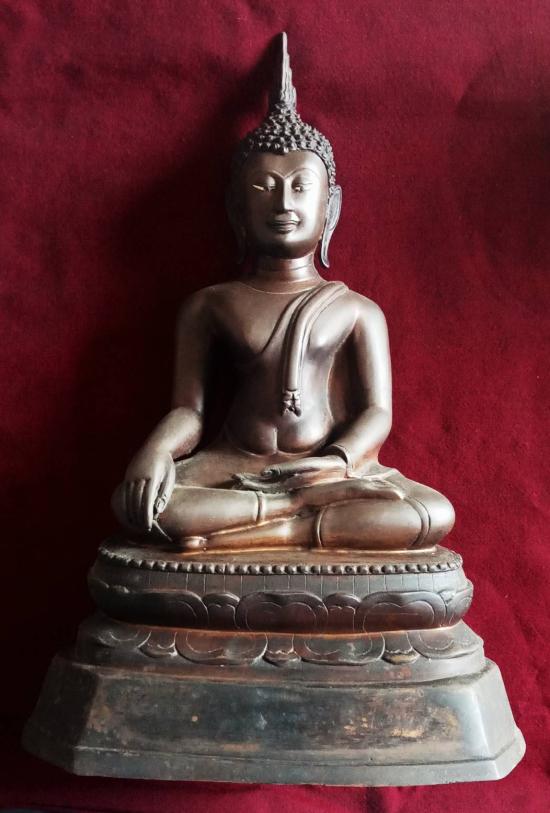 พระรัชกาล ปางมารวิชัย หน้าตักประมาณ 7 นิ้ว สูงประมาณ 15 นิ้ว ผิวแต่งแดงอมดำ ฐานบัวสองชั้นเด้ง ๆ ตามุกแท้ ใต้ฐานดินไทยเต็ม ๆ วรรณะสองสี มองเห็นแกนลวดหุ่นพระชัดเจน หล่อหนามาก พระมีน้ำหนักมากประมาณ 7 กิโลกรัม พุทธลักษณะงดงามมาก คมชัด ได้สัดส่วน สภาพสวยตามรูป แท้ดูง่าย ส่งฟรีทั่วไทย รับประกันตามกฎครับ
