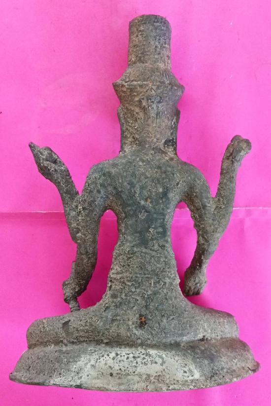 เทวรูปไม่ทราบที่ หน้าตักประมาณเกือบ 6.5 นิ้ว สูงประมาณ 10 นิ้ว เนื้อโลหะผุ ๆ ใต้ฐานอุดดิน สภาพตามรูป ส่งฟรีทั่วไทย รับประกันตามกฎครับ