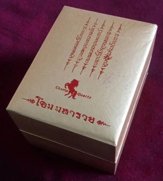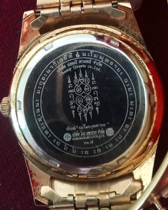 นาฬิกาข้อมือผู้ชาย Champ Quartz ยันต์ นะโมพุทธายะ ของบริษัทโอม มหารวยจำกัด ตัวเรือนโลหะสีทอง สภาพใช้มีเม็ดผดผุดที่ผิวโลหะบ้างแต่ยังสวยตามรูป มาพร้อมหมอนและกล่องเดิม ๆ ส่งฟรีทั่วไทย รับประกันตามกฎครับ |