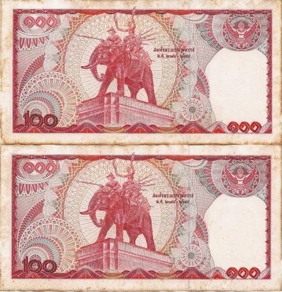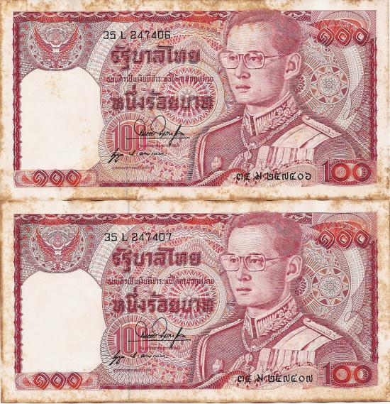 ธนบัตรหมุนเวียน ยุครัชกาลที่ 9 ธนบัตรแบบ 12 ชนิดราคา 100 บาท 2 ใบ สมหมาย-นุกูล เลข ๓๕ ม ๒๔๗๔๐๖ - ๐๗