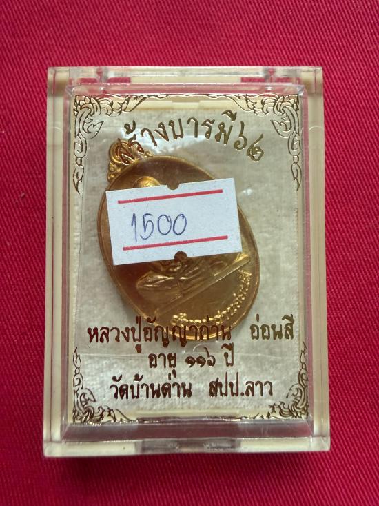 วัดใจไปเลย เหรียญสร้างบารมี หลวงปู่อัญญาถ่านอ่อนสี วัดบ้านด่าน สปป.ลาว ปี 2562 เนื้อทองทิพย์ หมายเลข 1500 |
