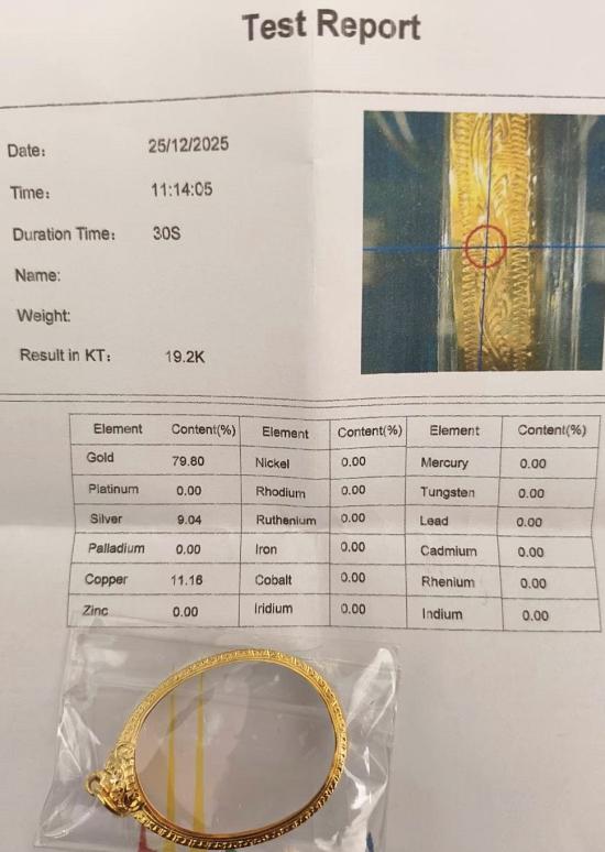 น้ำหนักทอง 3.84 กรัม ตรวจสอบทองได้ 79.80 %
