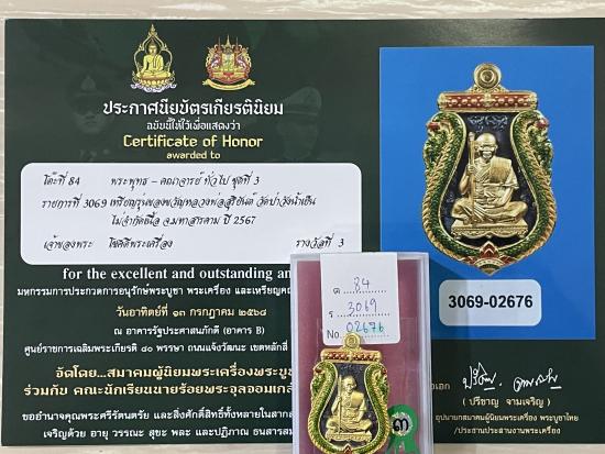 เลข 29 งานปะฉลุ เนื้อนวะทองคำปะฉลุ องค์ทองคำ ขอบทองคำ สร้าง 99องค์ ที่ระลึกกงานกฐินวัดป่าวังน้ำเย็น สร้างโดยแมนชัย สมปราถนา พร้อมกล่องเดิม และบัตรรับรองจากสมาคมและใบประกาศงานประกวดสมาคม