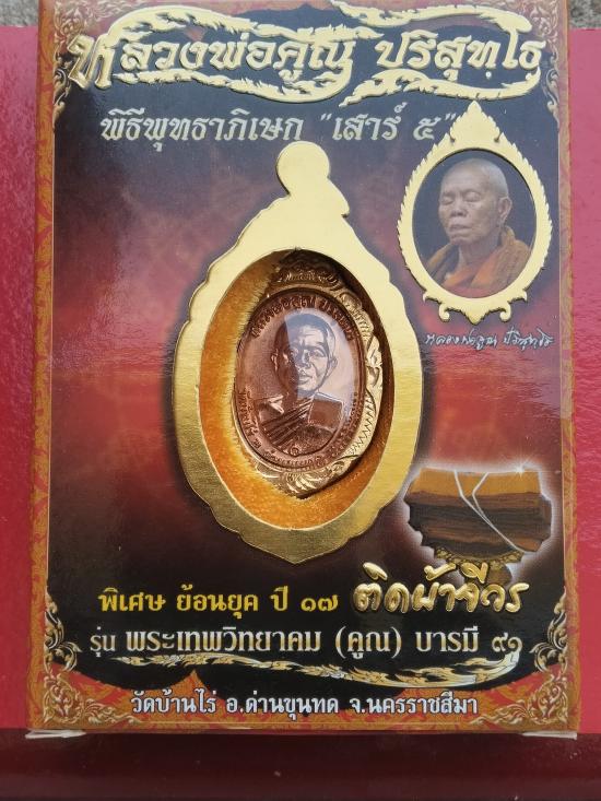หลวงพ่อคูณ ปริสุทโธ รุ่นพระเทพวิทยาคม (คูณ) บารมี ๙๑ ย้อนยุคปี17 เนื้อทองแดวผิวไฟ ติดจีวร เหรียญพิเศษย้อนยุค บารมี ๑๗ ทุกองค์ ติดผ้าจีวรของหลวงพ่อคูณ พิธีพุทธาภิเษก "เสาร์ ๕" ณ อุโบสถวัดบ้านไร่ โดยพระเทพวิทยาคม หรือ หลวงพ่อคูณ *เรียนลูกค้าทุกท่าน*