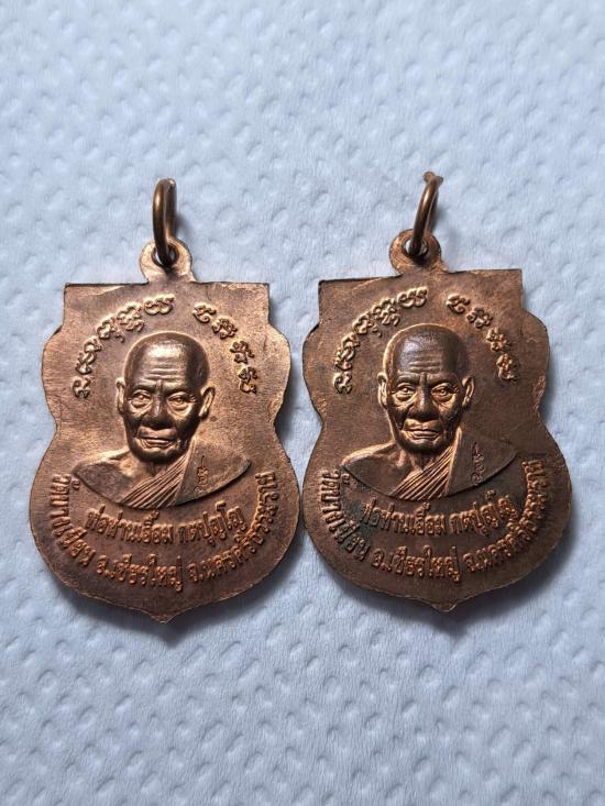 เหรียญเสมาหลวงพ่อทวด เสกโดยพ่อท่านเอื้อม กตปุญโญ วัดบางเนียน อ.เชียรใหญ่ จ.นครศรีธรรมราช อายุครบ 101 ปี 2551 เนื้อทองแดง ด้านหลังตอกโค้ดตรงสังฆาฏิ สภาพสวย เคาะเดียว 2 เหรียญ