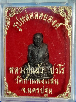 รูปหล่อลอยองค์ แซหยิด84 หลวงปู่แผ้ว ปาวโร วัดกำแพงแสน เนื้อทองผสม 2548 สร้าง 484 องค์ พร้อมกล่องเดิมจากวัด