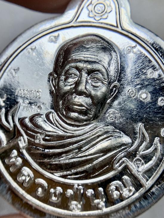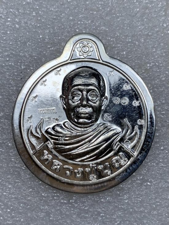 เหรียญกลมหลวงปู่บุญ ปริปุนฺณสีโล รุ่น หมุนเงิน หมุนทอง วัดปอแดง อ.ปักธงชัย จ.นครราชสีมา พ.ศ.2561 เนื้อเงิน กรรมการ ไม่ตัดปีก หลังเรียบ