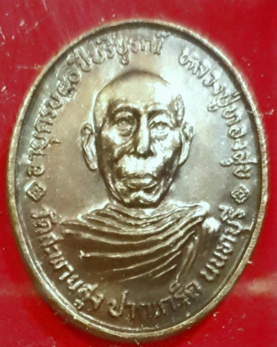 เหรียญหลวงพ่อทองสุข วัดสะพานสูง เนื้อทองแดงไม่ทราบปี มีกล่องใส่ให้ขนาดขนส่ง |