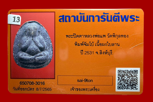 พระปิดตาจัมโบ้ เนื้อใบลาน หลวงพ่อแพ ......................400