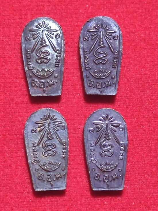 เคาะเดียว..พระปรกใบมะขามหลวงปู่แหวน สุจิณโณ ปี 2521 จำนวน4องค์ เนื้อทองแดงรมดำ |