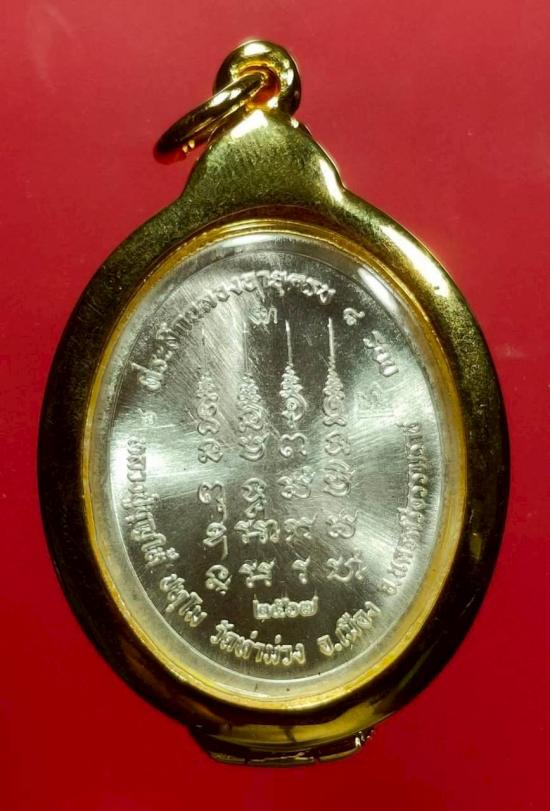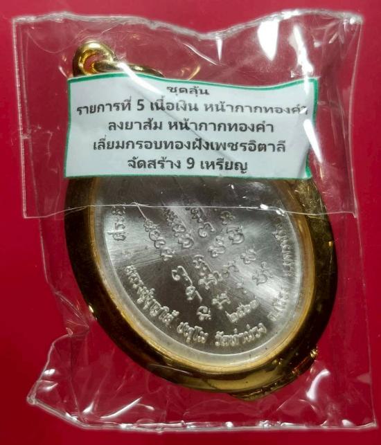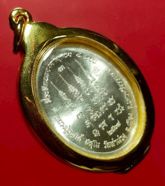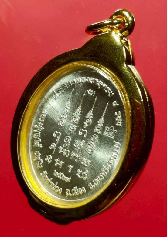 พ่อท่านบุญให้ เหรียญ เหนือดวงเนื้อเงิน หน้ากากทองคำ ลงยาส้ม สร้าง ๙ เหรียญ หมายเลข ๖