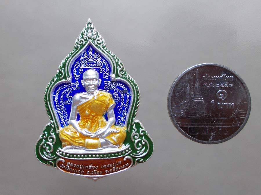 เหรียญรุ่นชินบัญชร หลวงปู่เกลี้ยง เชตธัมโม วัดโนนแกด จ.ศรีสะเกษ พ.ศ.2556 เนื้อเงินลงยาราชาวดี สีน้ำเงิน ตอกโค๊ต ตอกเลข สภาพสวยกริ๊บพร้อมกล่องเดิมๆ !!
