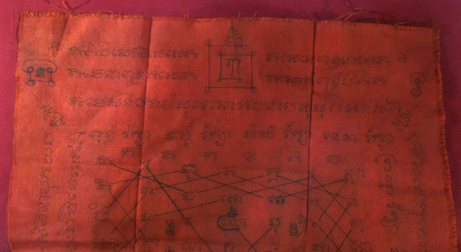 ผ้ายันต์เกราะเพชร วัดป่าองค์ลาย จ.ศรีสะเกษ จารยันต์ด้วยมือ ครับ
