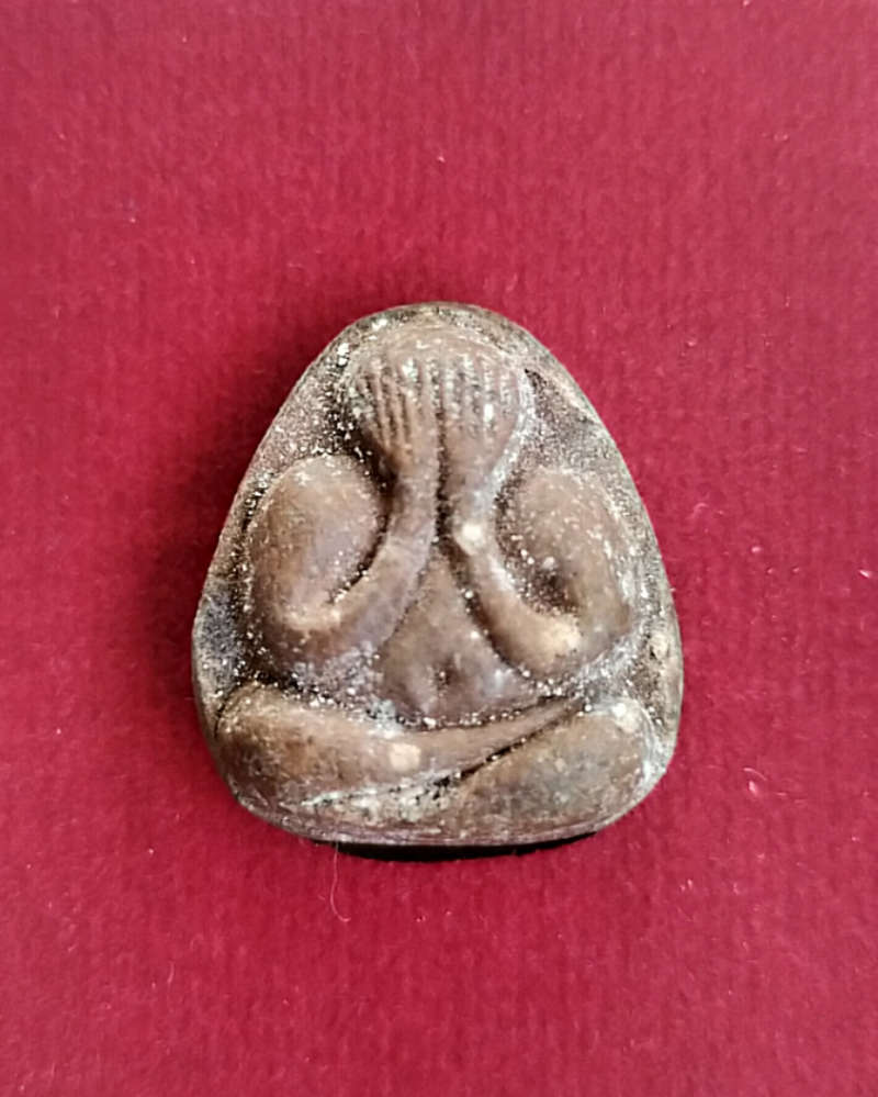 พระปิดตามหาเสน่ห์ หลังยันต์พุทโธ ลป.โต๊ะ วัดลาดปลาเค้า จ.กรุงเทพฯ ปี2521 เนื้อออกโซนน้ำตาล มีกล่องเดิม