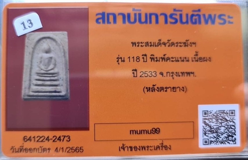 ## สมเด็จวัดระฆัง อนุสรณ์ 118ปี พ.ศ.2533 พิมพ์คะแนน "พระสวยเดิมไม่ผ่านการใช้.หลังปั้มตรายาง...พร้อมบัตรรับรอง.""รับประกันแท้ตลอดฃีพและแท้ตามมาตรฐานสากล....... อนาคตดี ถูกๆเลยครับ.... ราคายังไม่แรง.... |