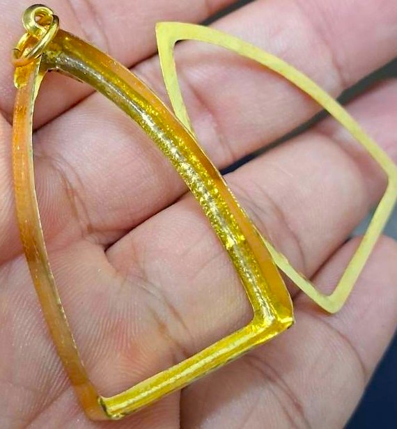 กรอบทองมือสอง ใส่หลวงปู่ทวด เตารีด/หลังตัวหนังสือใหญ่05 พระกริ่ง พระรูปหล่อทั่วไป หรืออื่นๆที่ไกล้เคียง หน้าจอกว้าง 2.30 ซม., สูง 3.90 ซม. น้ำหนัก 2.67 กรัม เคาะเดียว