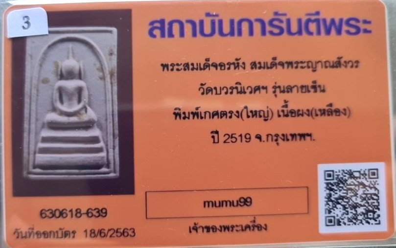 @# พระสมเด็จ อรหัง สมเด็จญาณสังวร พิมพ์เกศตรง หลังลายเซ็นต์ เนื้อผงเหลือง..พ.ศ.2519 พร้อมบัตรรับรอง เป็นพระออกวัดบวรนิเวศน์ปีลึกๆ....สวยแชมป์มากประกวดได้เลย..พระแท้นิยมมาตรฐานสากล มีรายการประกวดมาตรฐาน...นิยมเล่นหาในวงการกันมานาน...หายาก |